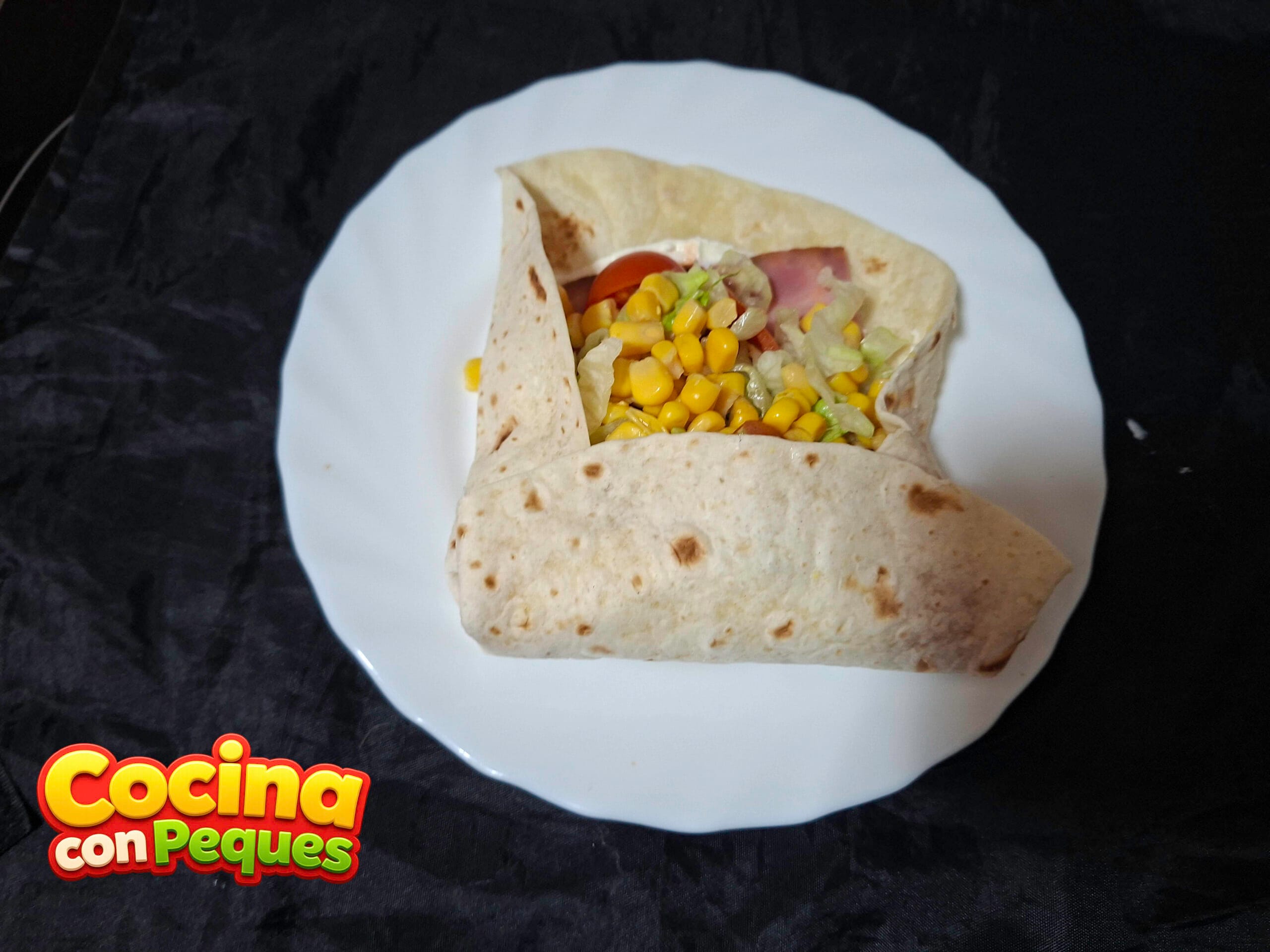 - Este wrap es una comida completa y equilibrada: aporta la energía necesaria gracias a los carbohidratos de la tortilla, proteínas de calidad para su crecimiento y vitaminas frescas gracias a los tomates y la lechuga.